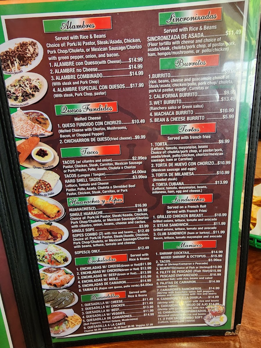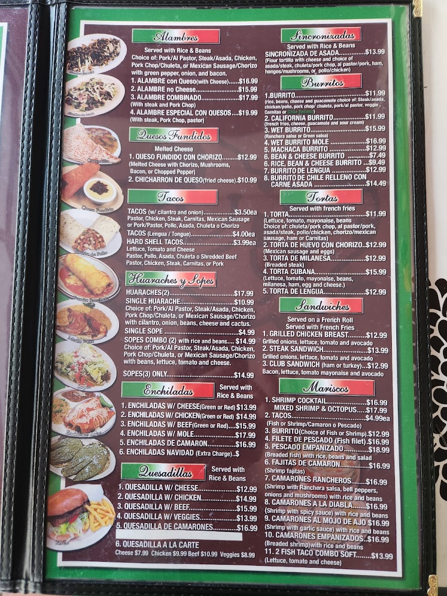 Lettuce, tomato, mayonaise, beans Choice of: chuleta/pork chop, al pastor/pork, asada/steak, pollo/chicken, chorizo/mexican sausage, ham or Carnitas