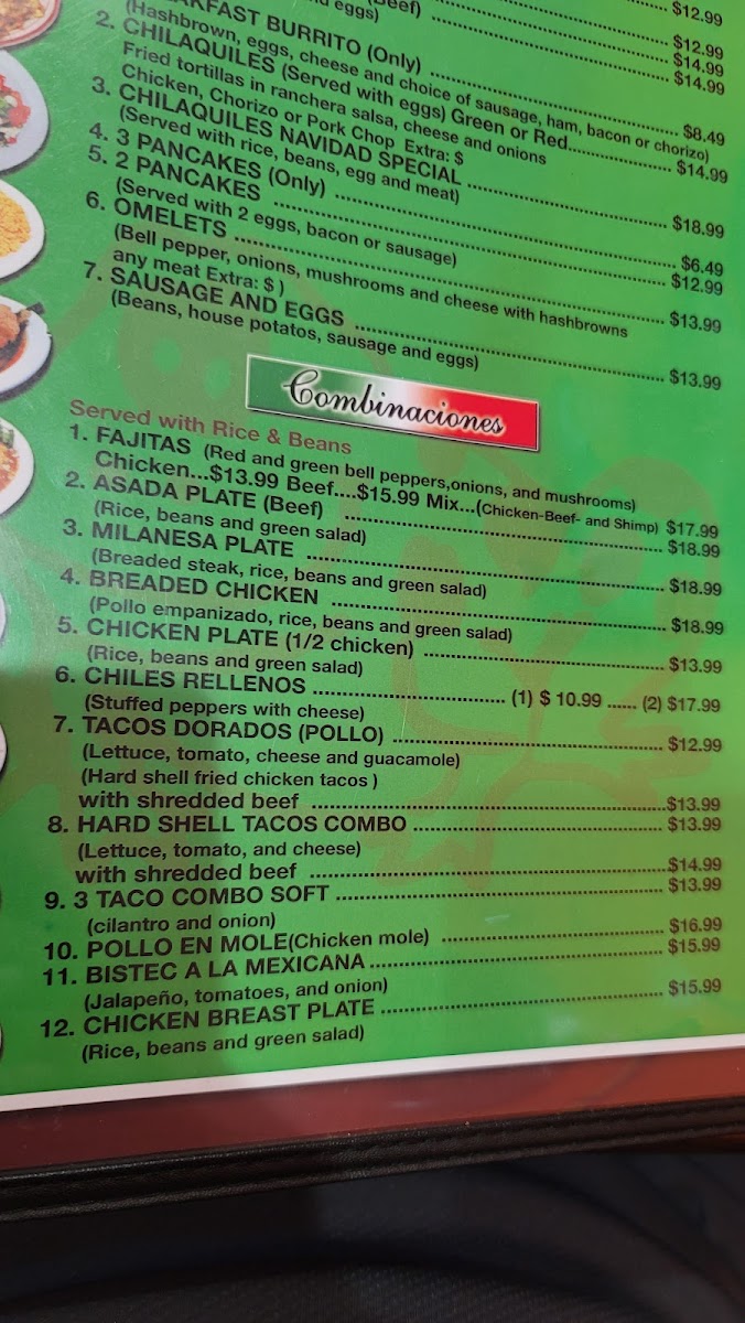 rice, beans, cheese and guacamole choice of: Steak/asada, chicken/pollo, pork chop/ chuleta, pork/al pastor, veggie, Carnitas or Chile Relleno